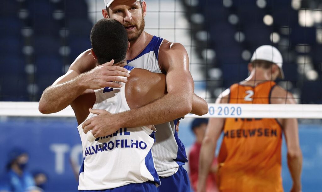 Precisando da vitória, Alison e Álvaro fizeram um jogo perfeito para derrotar Brouwer / Meeuwsen (HOL) e avançar às oitavas: 2 a 0 (21-14 e 24-22)
